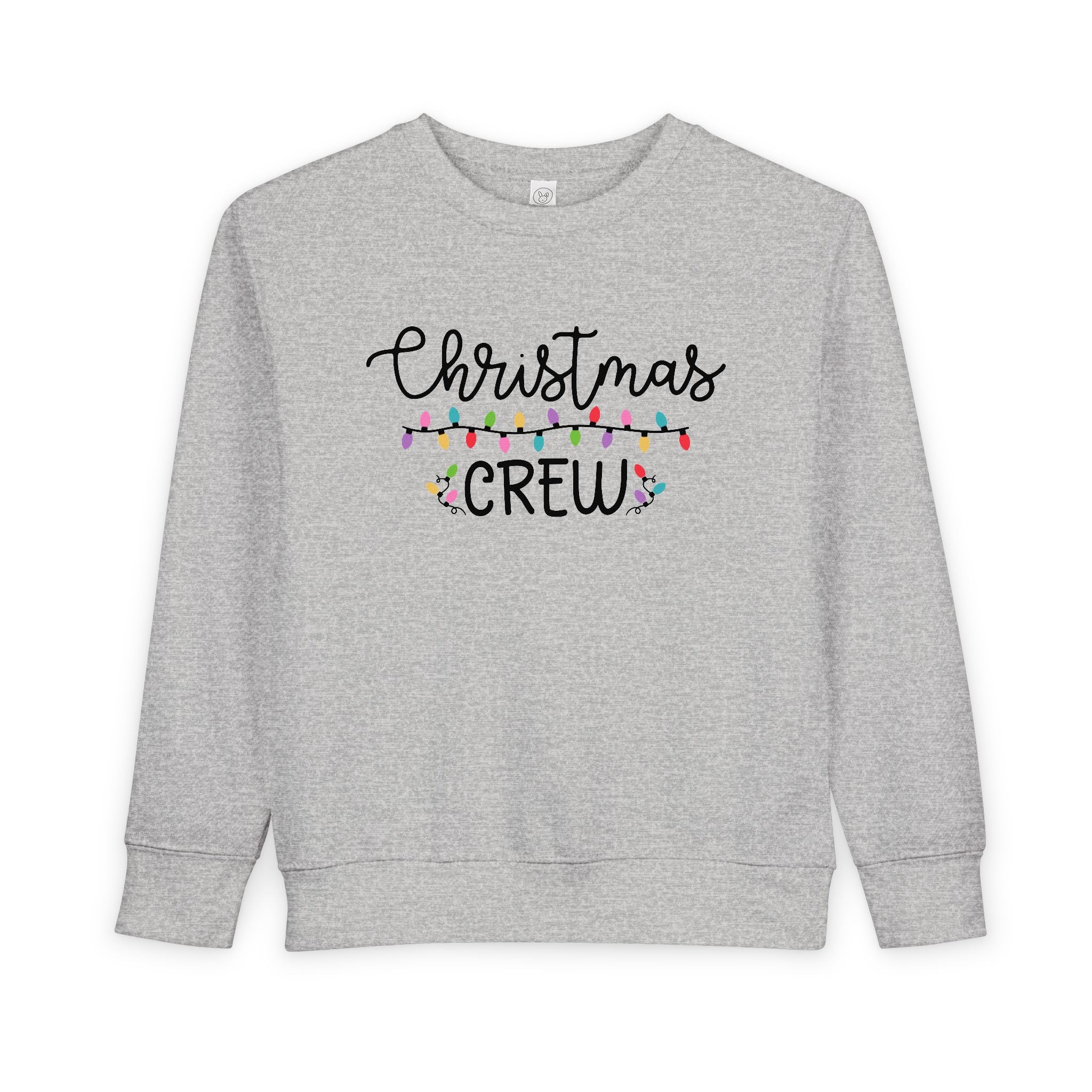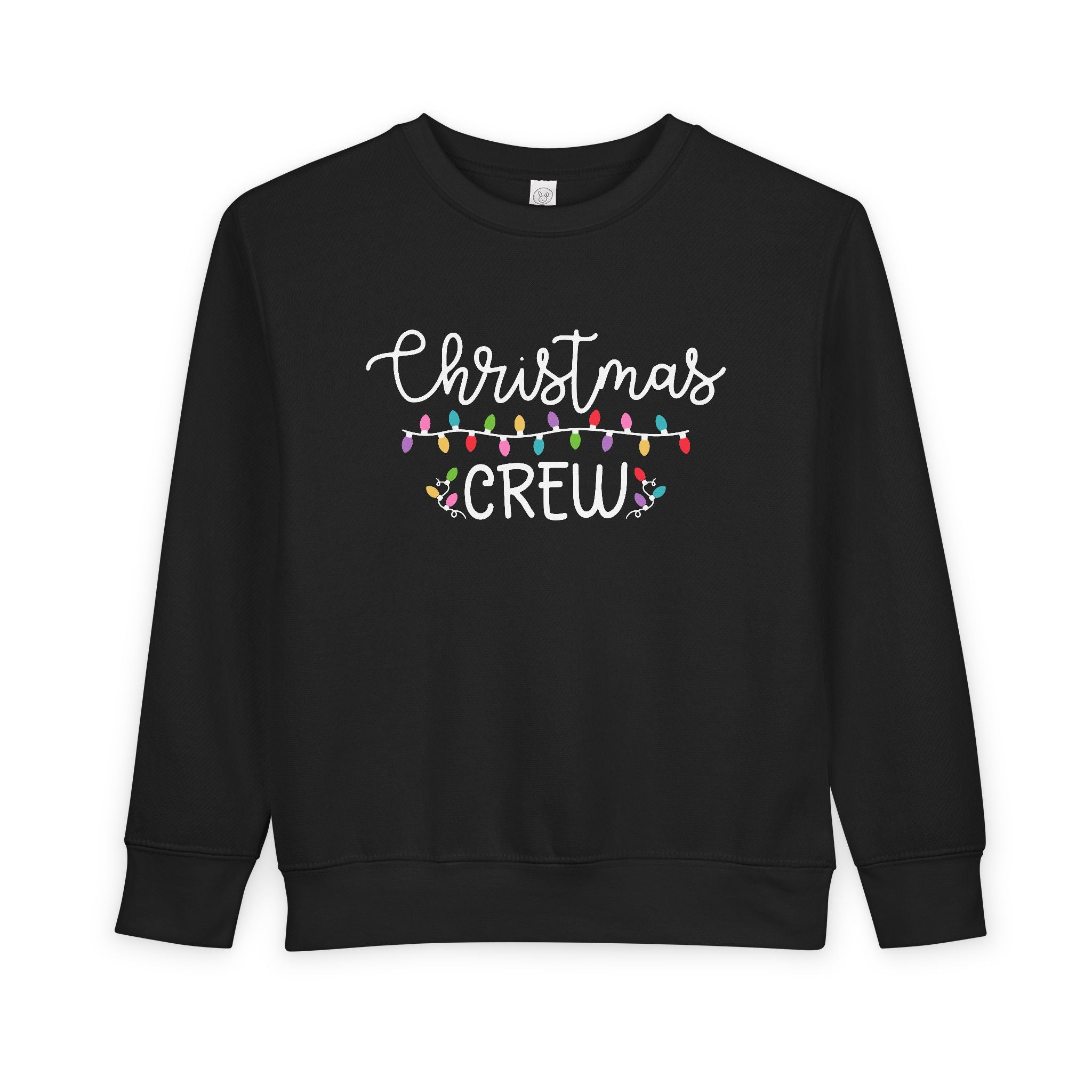 Dress your littlest holiday helper in this cozy Christmas Crew sweatshirt! Featuring colorful string lights and festive lettering, it's perfect for making memories and matching with the whole family. Available in toddler, kids, and adult sizes for the ultimate coordinated look this holiday season.