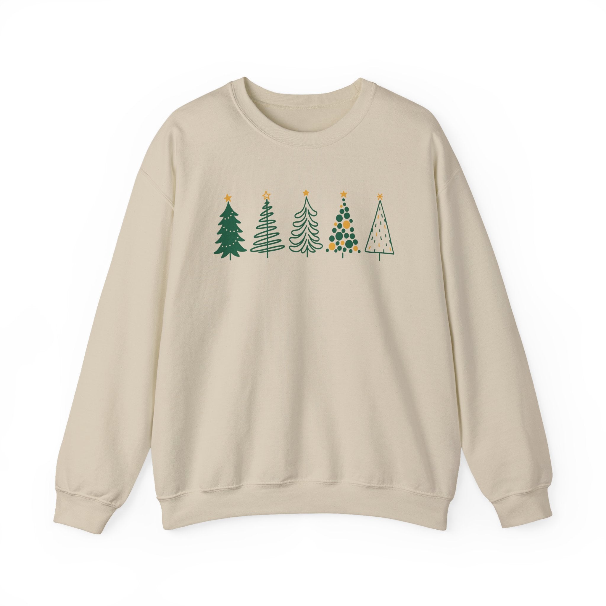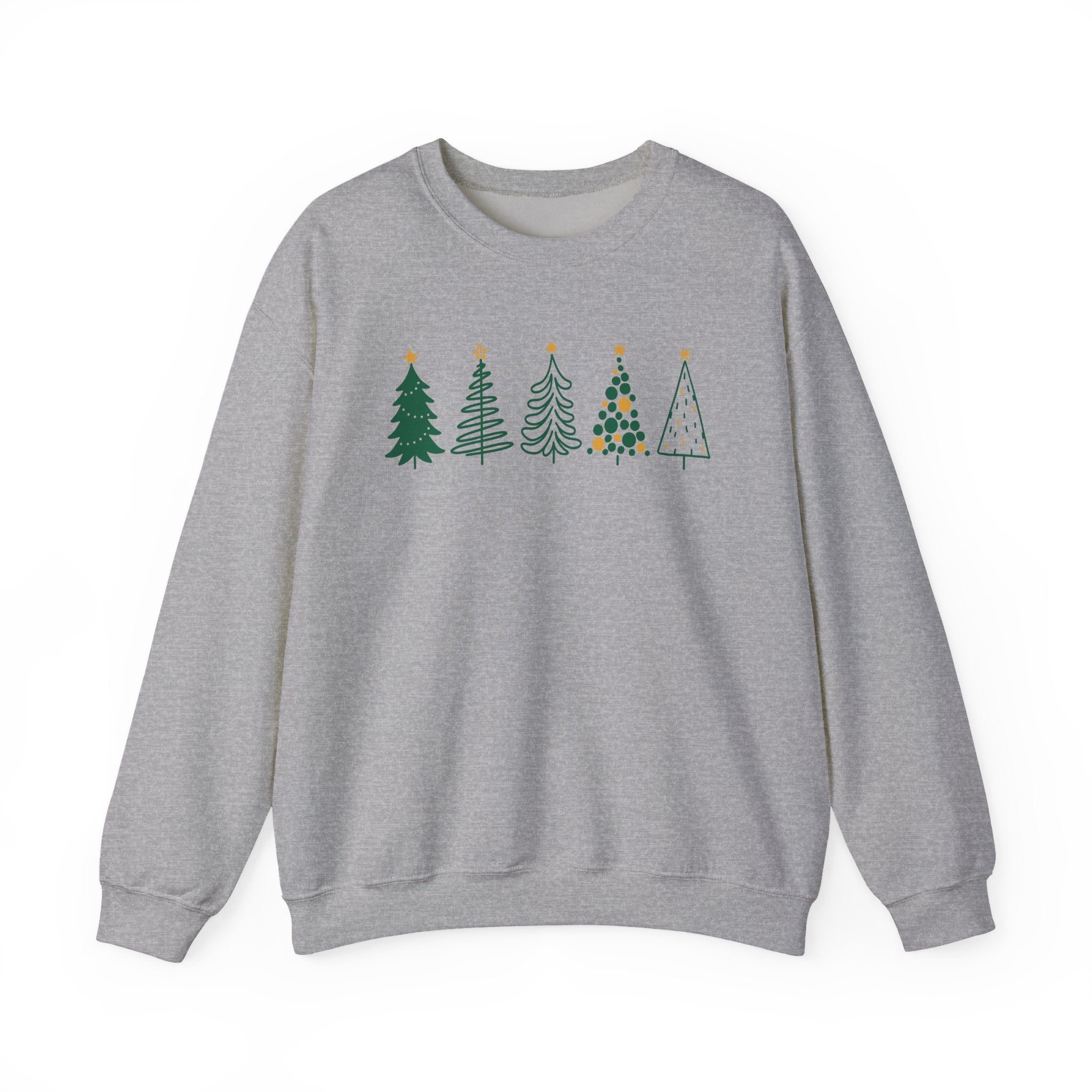 Our Green & Gold Christmas Trees Heavy Blend Women's Crewneck Embroidered Sweatshirt adds festive flair to any winter wardrobe. Featuring elegant green and gold embroidered Christmas trees on the chest, this cozy sweatshirt is available in three colors and sizes S-XXXL. Perfect for staying stylish and warm during the holidays, it’s a comfortable choice for seasonal gatherings and everyday wear. Shop the entire Christmas Graphics Collection now!