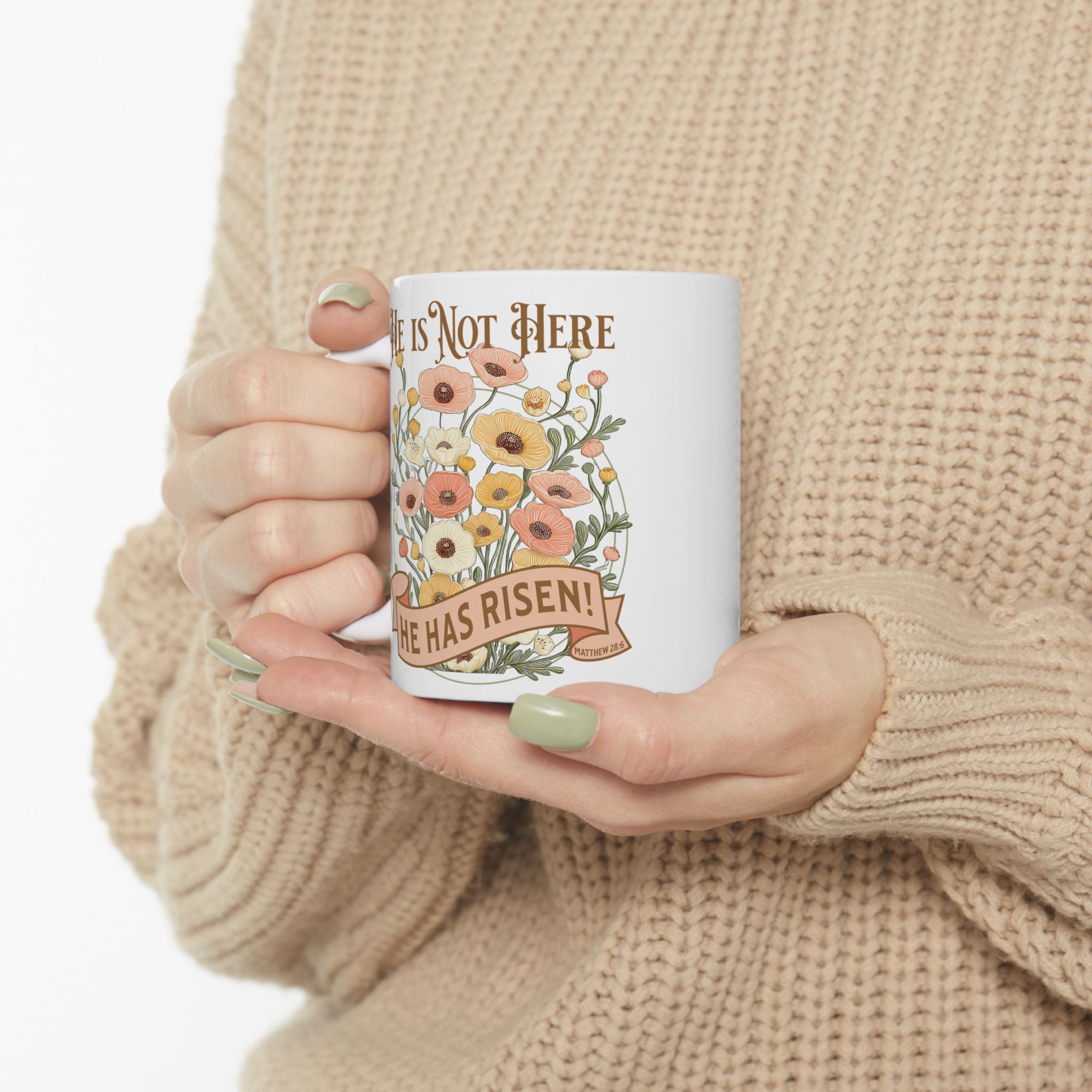 He is Not Here He Has Risen Easter Christian Ceramic Mug Coffee Cup (11oz & 15oz)