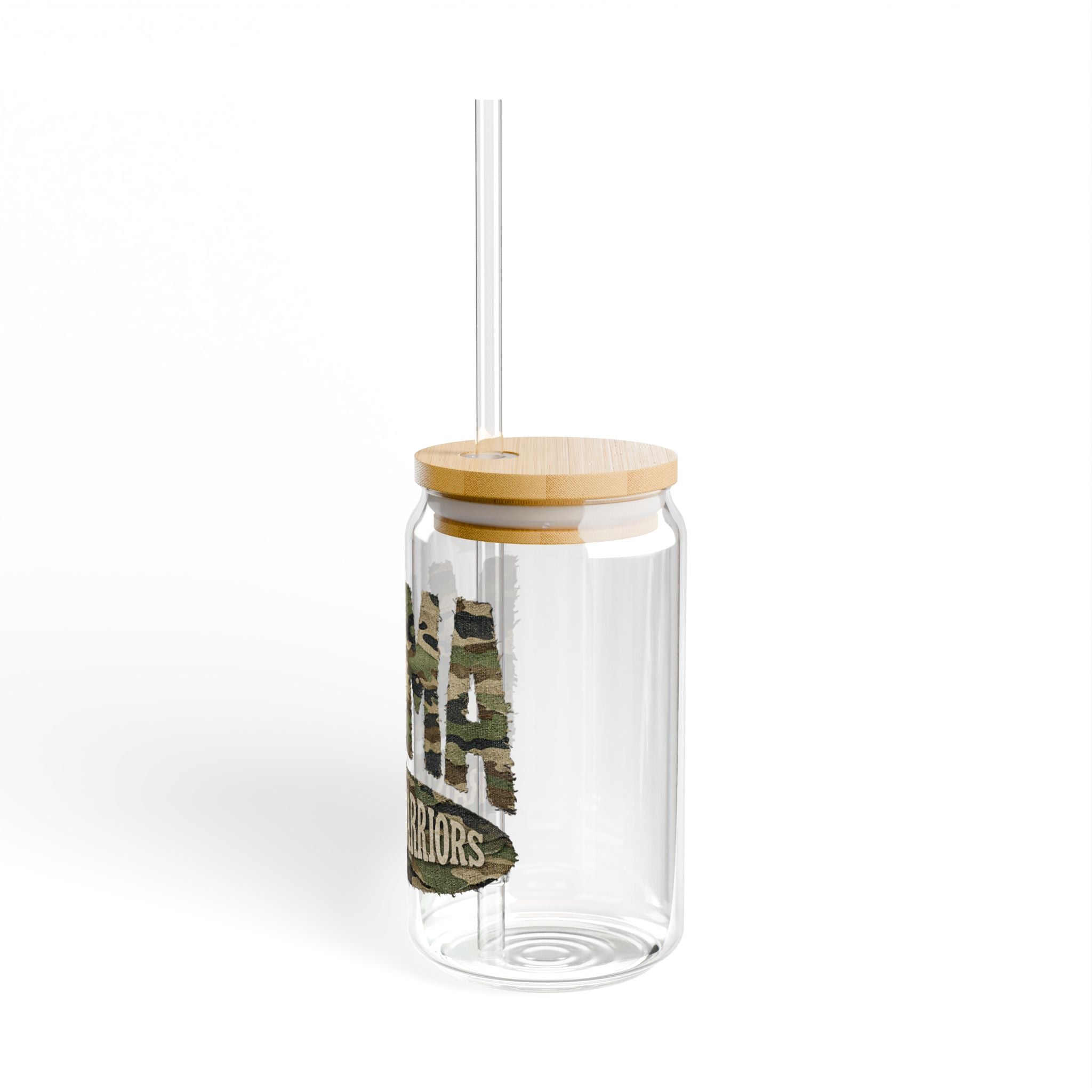 Mama Raising Warriors Camouflage Sipper Glass 16oz Reusable Drink Jar with Lid & Straw