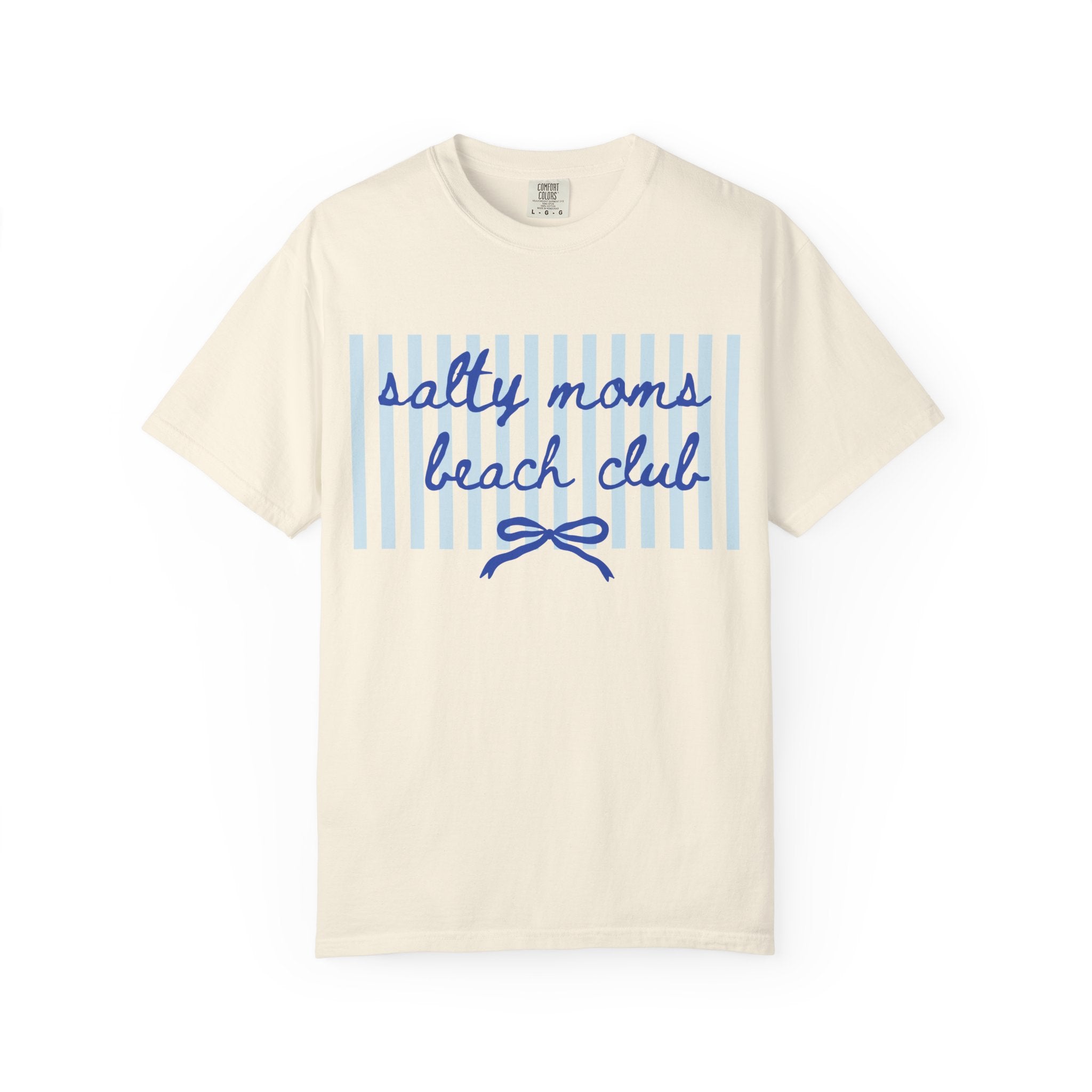 Our salty moms beach club graphic tee brings laid back coastal vibes with a fun mom life twist. Featuring soft stripes and a cute bow detail, this design is perfect for beach days, poolside lounging, or everyday casual wear. The relaxed fit and easygoing style make it a go to for busy moms who love a little sunshine and saltwater energy in their wardrobe.