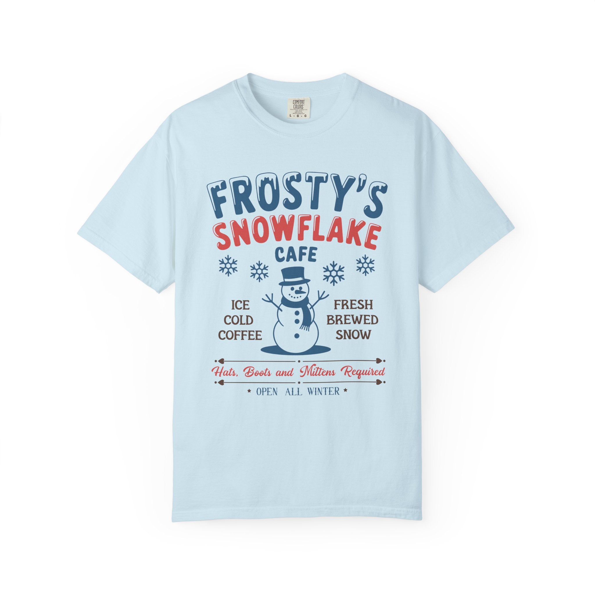 Step into winter charm with our Frosty's Snowflake Cafe Tee! Featuring a cheerful snowman and retro café design, this unisex shirt delivers cozy holiday vibes. Perfect for sipping cocoa or strolling snowy streets, it adds festive flair to your wardrobe. Soft, comfy, and playful—this tee is a must-have for anyone who loves whimsical seasonal style! Shop the entire Christmas Graphics Collection now!