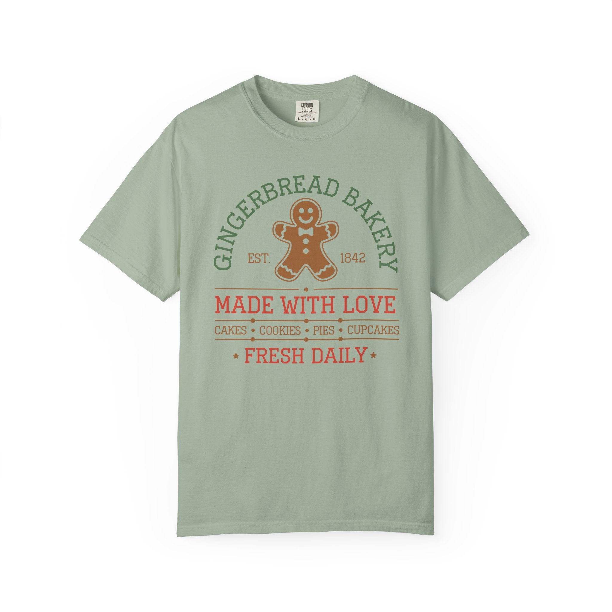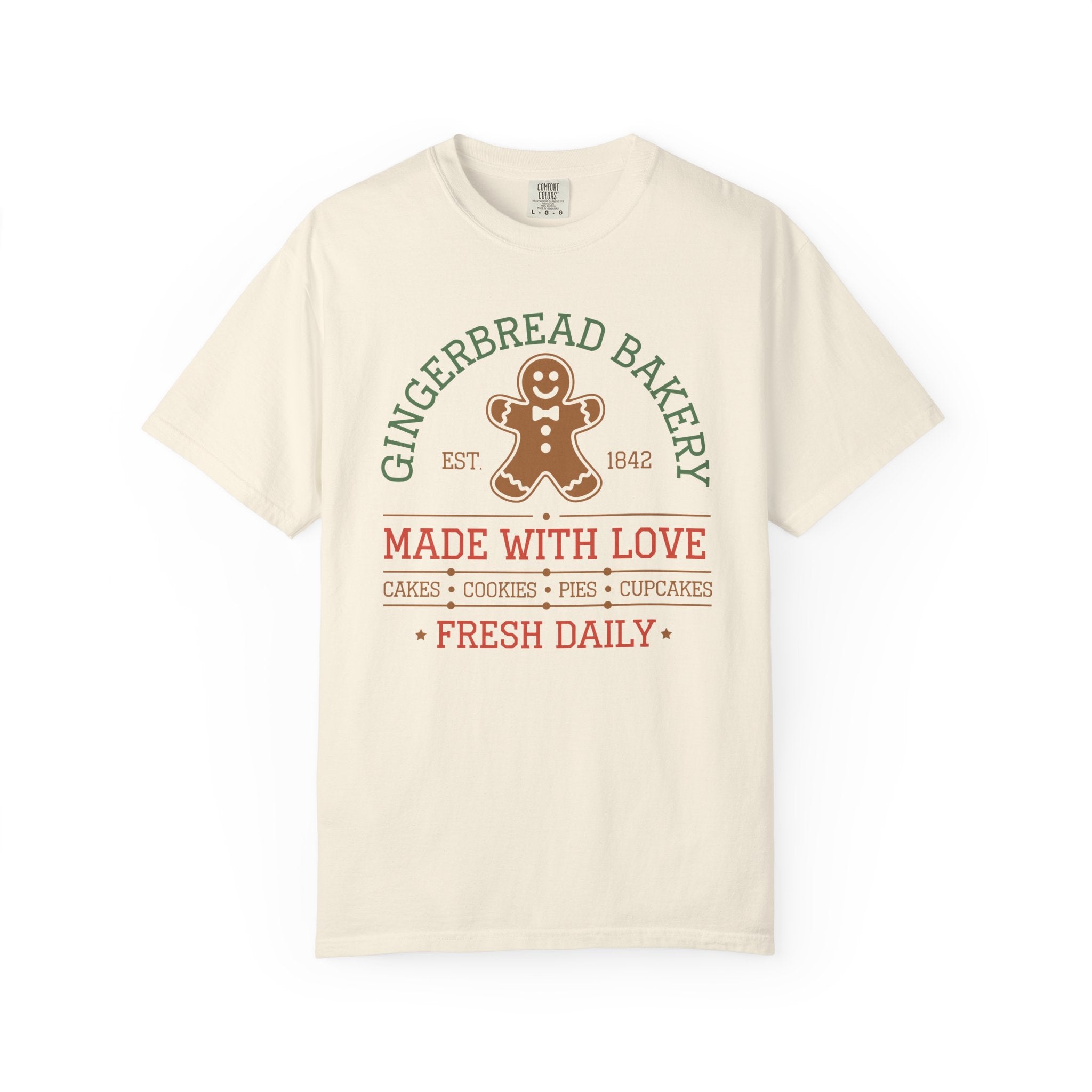 Celebrate cozy holiday vibes with this Gingerbread Bakery tee. Featuring a cheerful gingerbread man and charming vintage lettering, it’s perfect for festive gatherings and cookie-baking days. Soft cotton and a relaxed unisex fit make it comfy for everyday wear. Styled with love, it’s your go-to shirt for spreading warmth, sweetness, and a little seasonal cheer. Shop the entire Christmas Graphics Collection now!