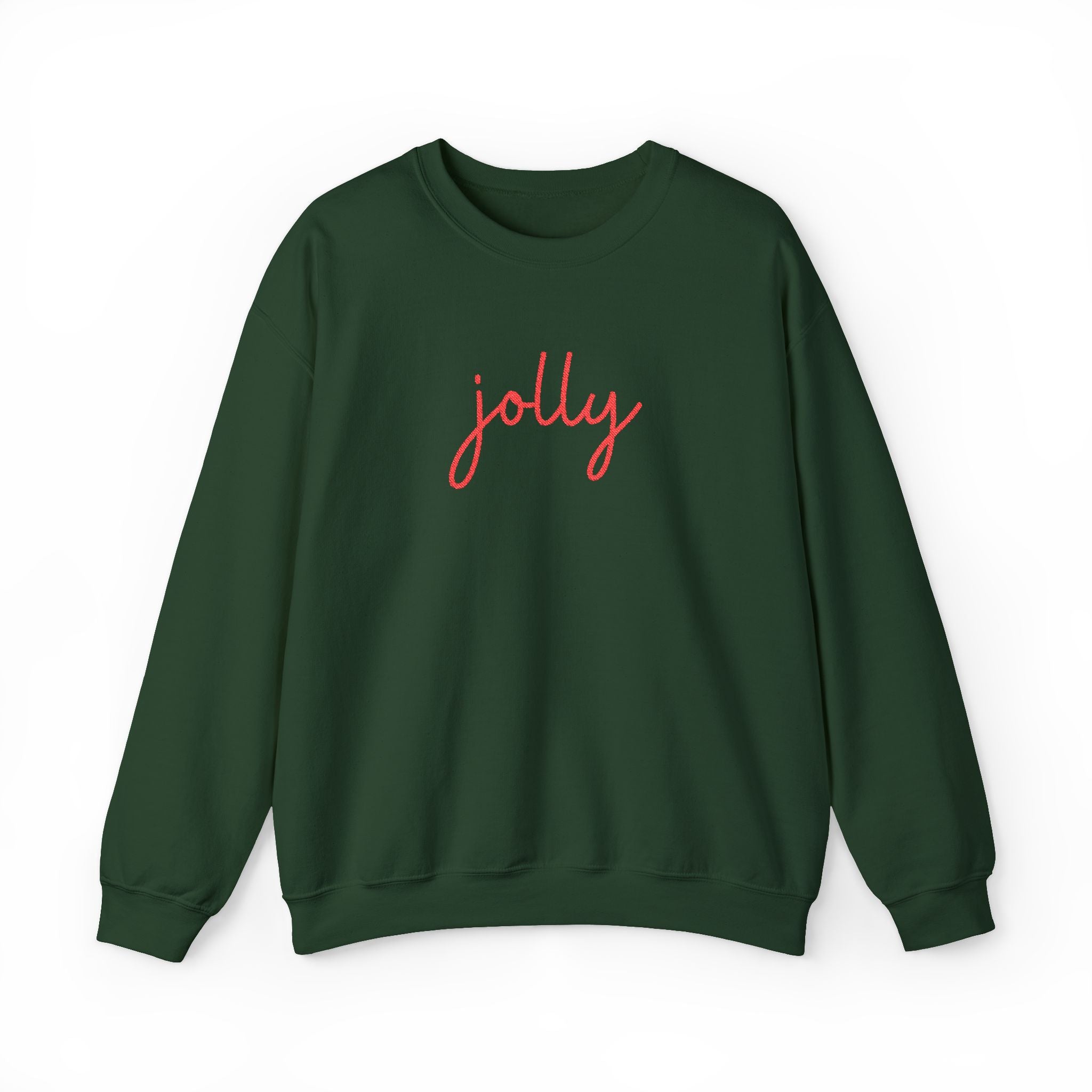 Spread some holiday cheer with our “Jolly” embroidered sweatshirt. This cozy crewneck features festive red script stitching on a soft, heavy blend fabric—perfect for staying warm and stylish all season. Whether you're decorating, baking cookies, or heading to a holiday party, this comfy classic adds a joyful touch to any outfit. Available in multiple seasonal colors!