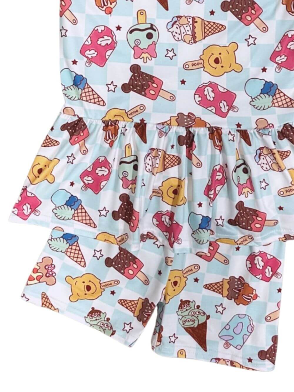 Our Sweet Scoops & Honey Bears Girls Shorts Outfit is a fun and playful pick for moms dressing their girls in cheerful summer style. Featuring an adorable ice cream and honey bear print, this outfit is perfect for playdates, vacations, or everyday fun. Lightweight and comfy for active kids, it’s easy to wear and full of personality. Add this sweet outfit to her summer wardrobe today! And be sure to check out our other must have New Arrivals.