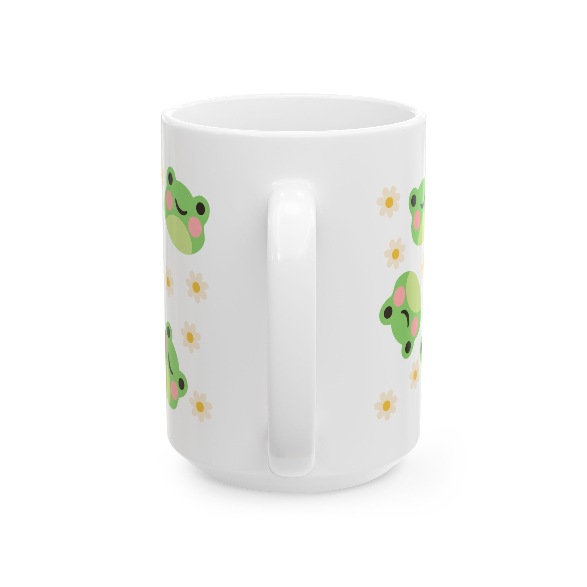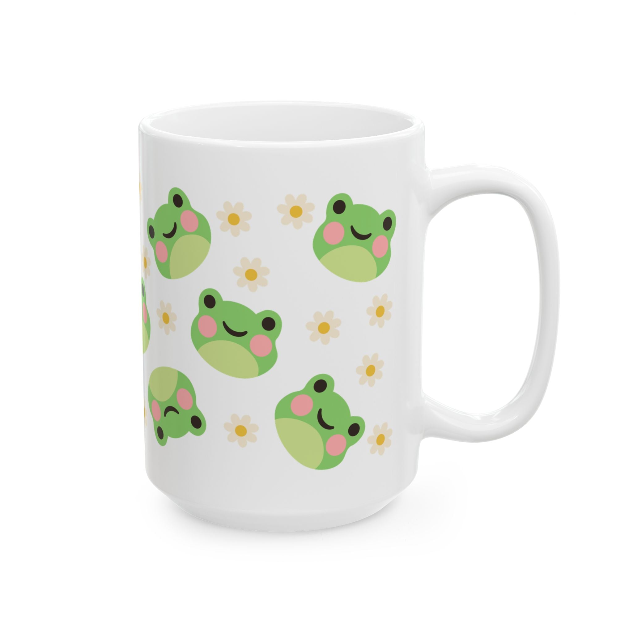 Warm morning light, a chorus of tiny croaks, and a pocket of calm — this glossy ceramic mug brings a playful pond to your daily ritual. Cute, blushing frog faces float among tiny sunbursts on a bright white canvas. The cheerful pattern lifts slow sips and busy desks alike, turning coffee, tea, or cocoa into a small, silly moment of delight. Lightweight enough for everyday use and easy to care for, the mug sits comfortably in hand with a smooth C-handle and gleaming finish. Slip it into weekend rituals, study sessions, or a laid-back brunch and let a little amphibian charm brighten the scene.