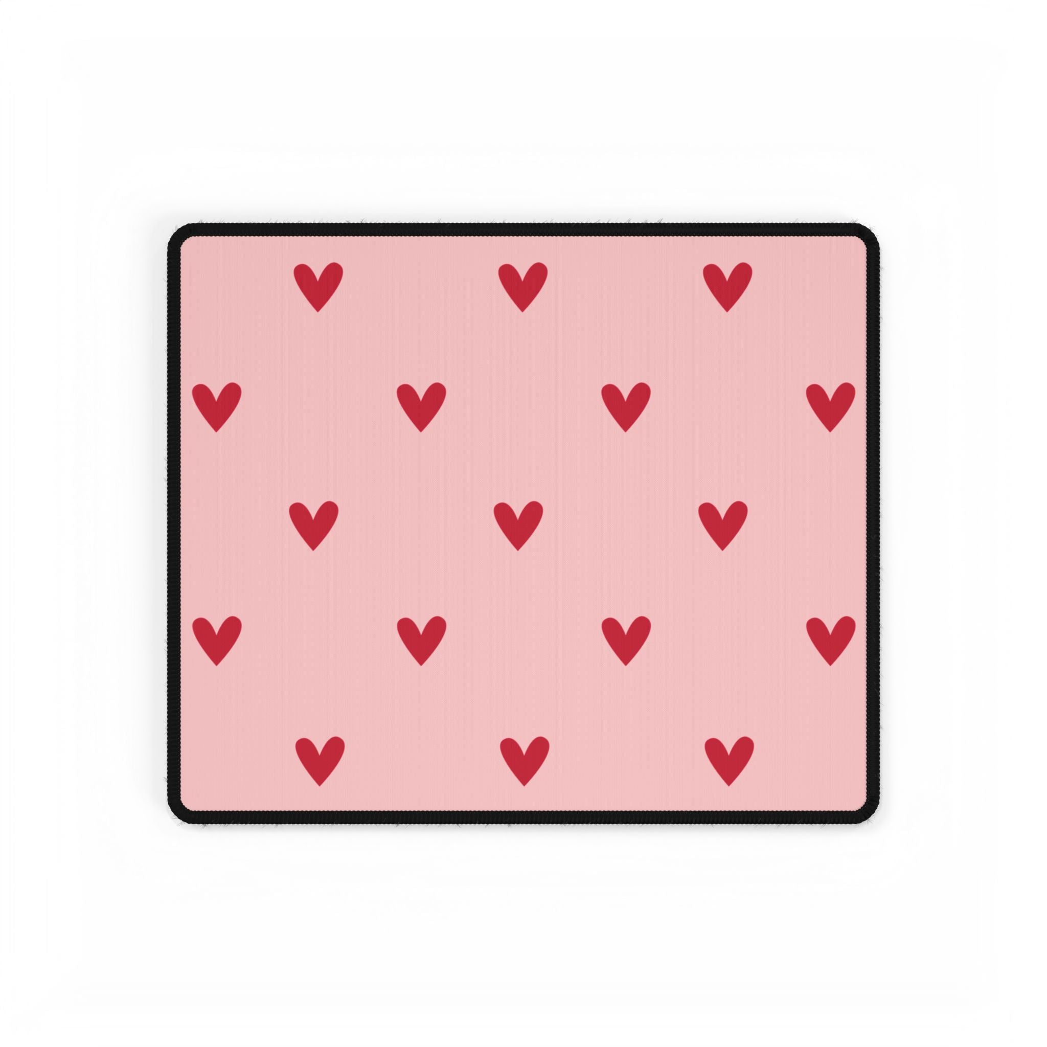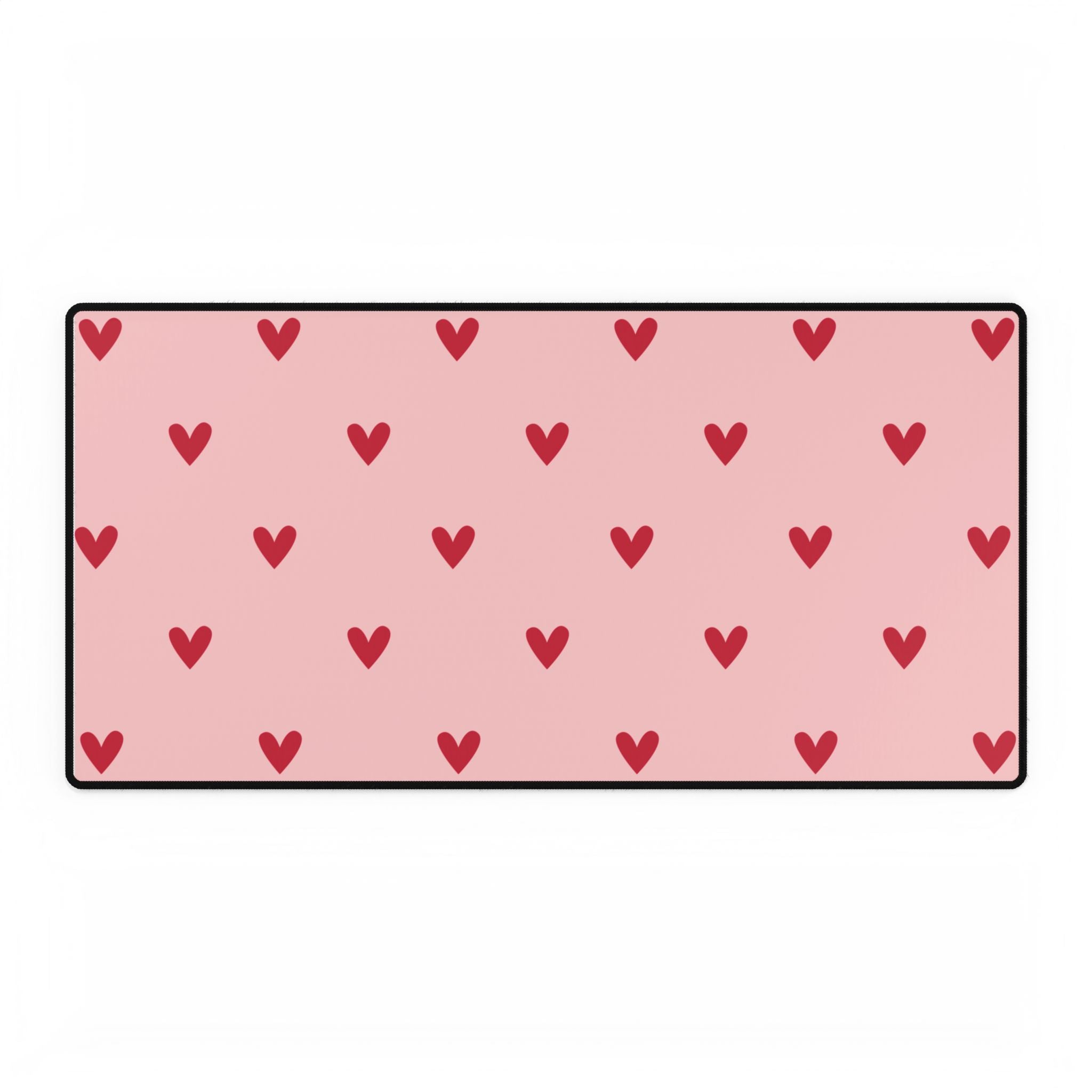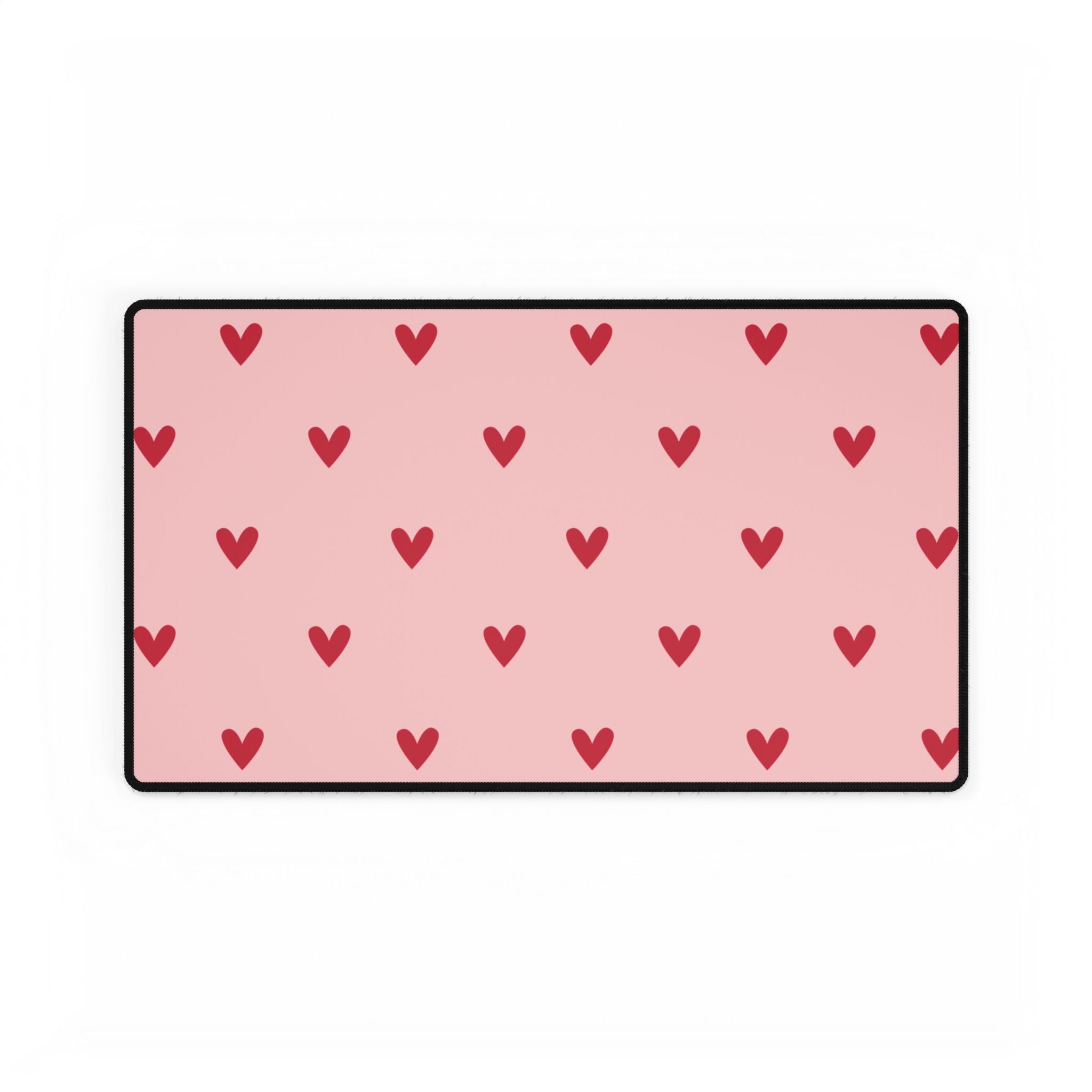 Spread a little warmth across your workspace with this heart-patterned desk mat. Soft pink tones and scattered crimson hearts bring a gentle, playful energy to long work sessions, study nights, or creative bursts. The generous surface gives your keyboard and mouse room to breathe while the smooth polyester face ensures every glide is quiet and precise. A grippy natural rubber underside keeps the mat steady through fast mouse movements, and stitched edges protect the design from wear. It’s an easy way to brighten a desk, anchor a cozy corner, or add a touch of affectionate charm to a home office during Valentine’s, anniversaries, or whenever you want your desk to feel more personal.