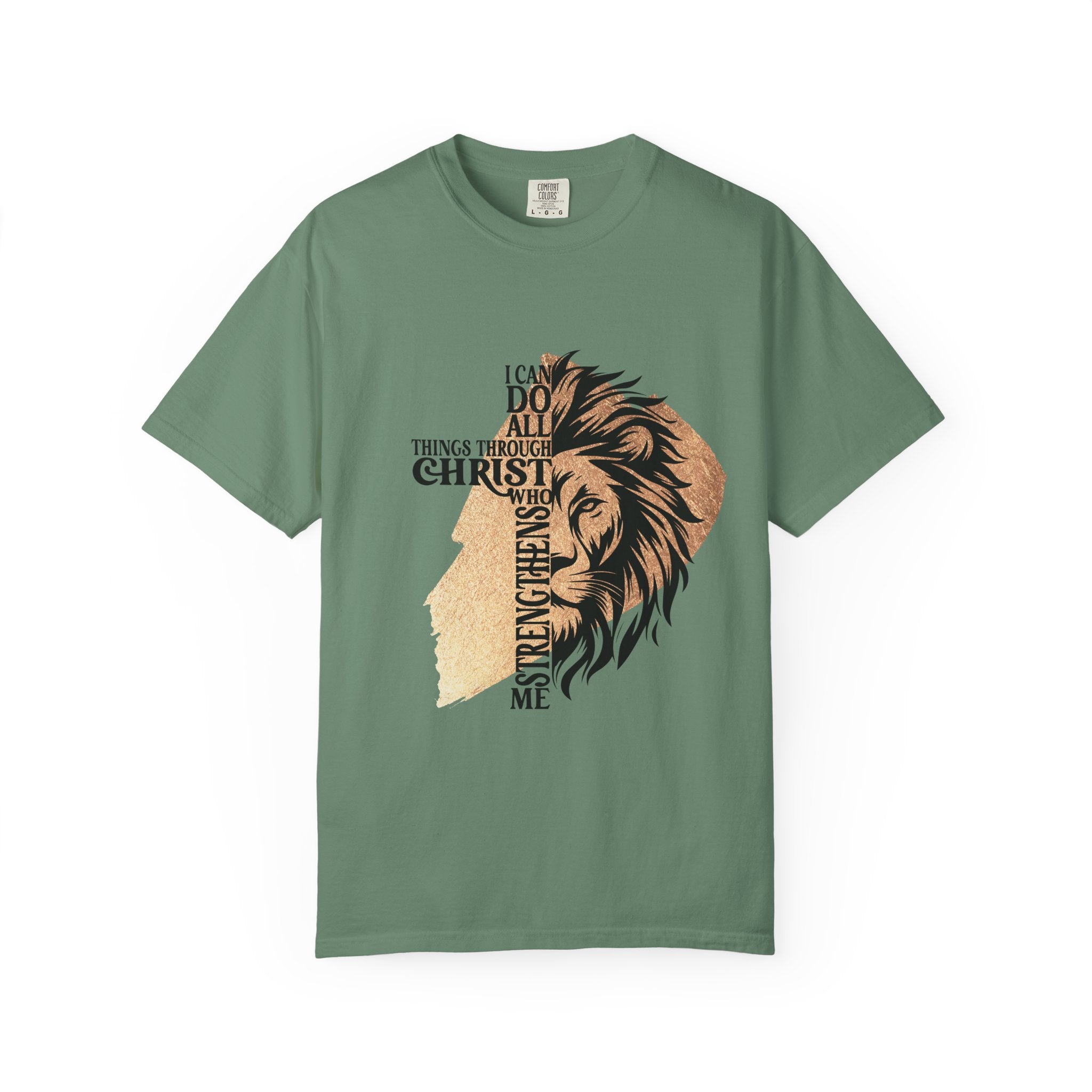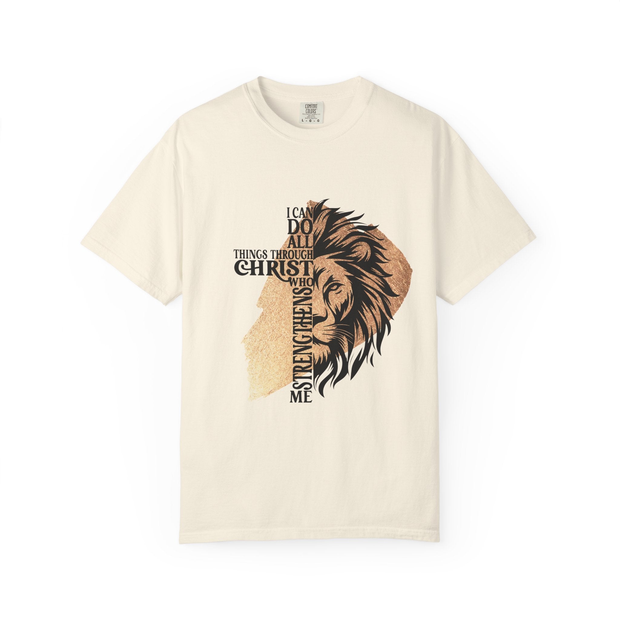 Bold faith meets everyday comfort with this All Things Through Christ graphic tee. Featuring a striking lion design and powerful scripture-inspired message, this unisex shirt is soft, breathable, and easy to style. Perfect for church, casual wear, or gifting, it’s a meaningful reminder of strength, belief, and confidence in Christ daily for women men and teens alike everywhere every season.