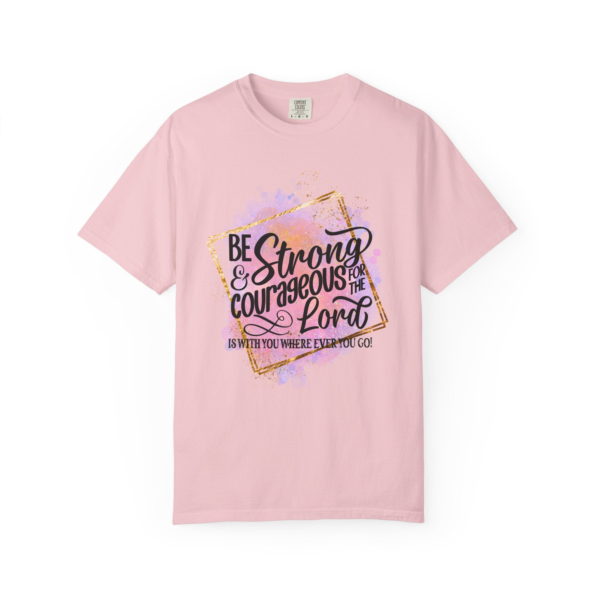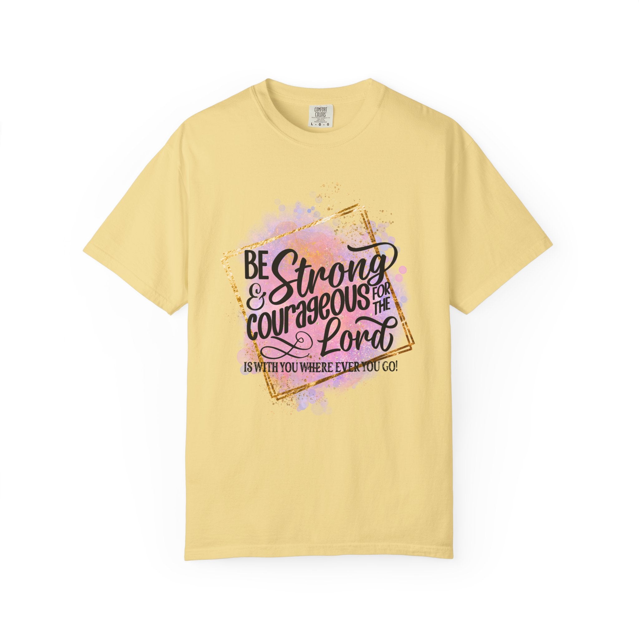 Share faith and encouragement with this Be Strong & Courageous Christian graphic tee. Featuring uplifting scripture-inspired typography and soft watercolor accents, this unisex short sleeve shirt offers everyday comfort with a relaxed fit. Easy to style and perfect for church, casual wear, or gifting, it’s a meaningful reminder that the Lord is with you wherever you go every day always.