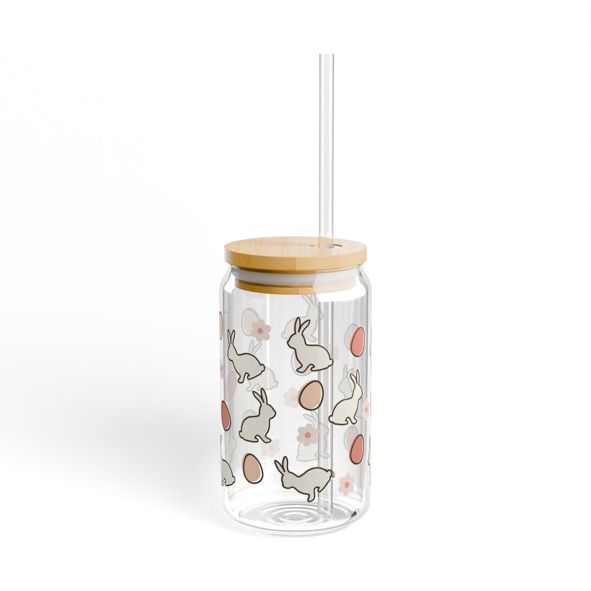 Sweet Bunny Tumbler Sipper Glass 16oz — Reusable Drink Jar with Lid & Straw