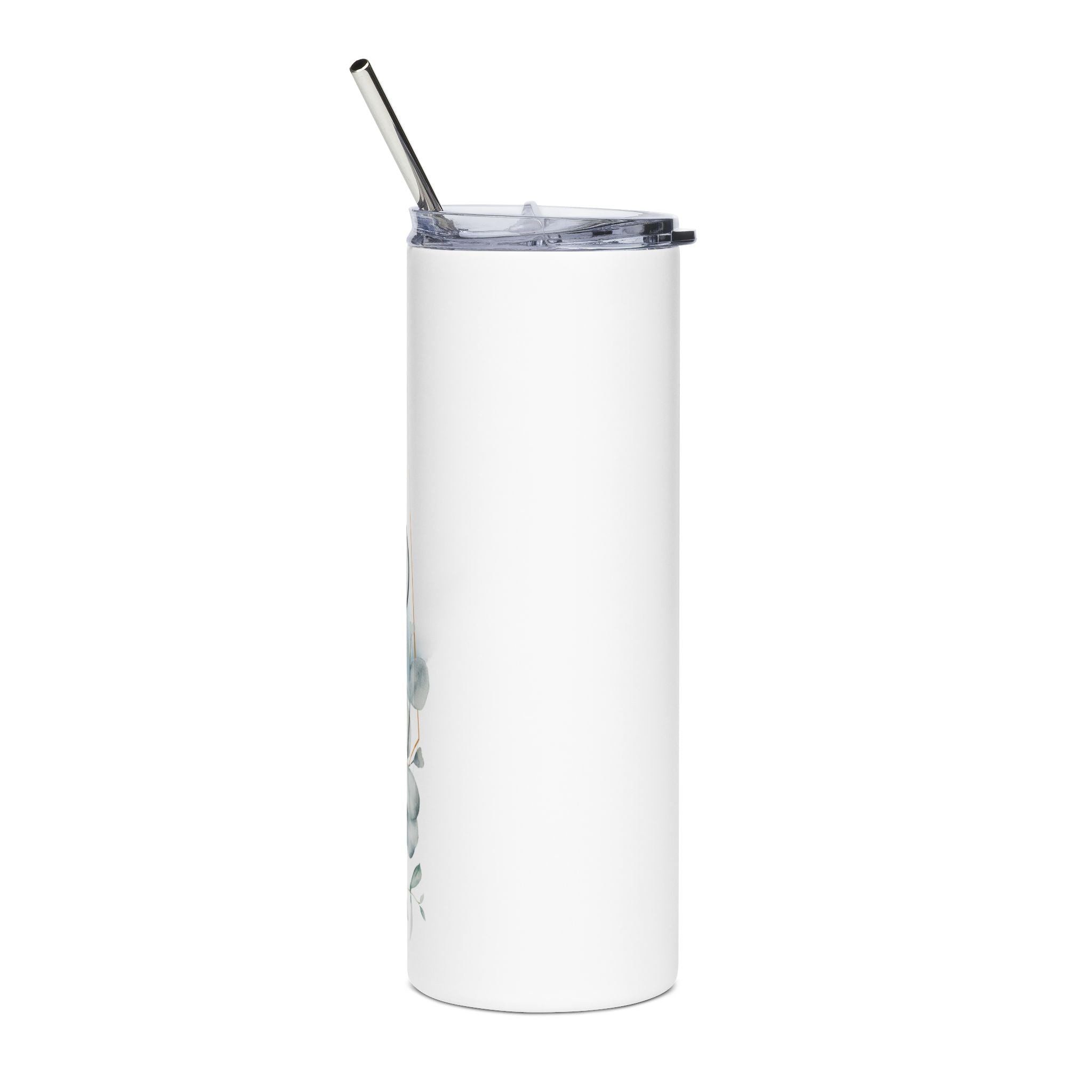This slim 20 oz stainless steel tumbler holds more than a drink — it carries a quiet message. Hand-lettered script overlays a soft blue wash and delicate eucalyptus sprigs, creating a calm, heartfelt look that reads like a handwritten note. The double-walled stainless construction keeps beverages insulated, while the included clear lid and stainless straw make sipping simple and spill-aware on the move. Slim and tall, it slips into narrow cup holders and becomes a constant companion during long drives, workdays, or quiet mornings on the porch. It’s for people who appreciate thoughtful details and gentle reminders of friendship and family woven into everyday items.