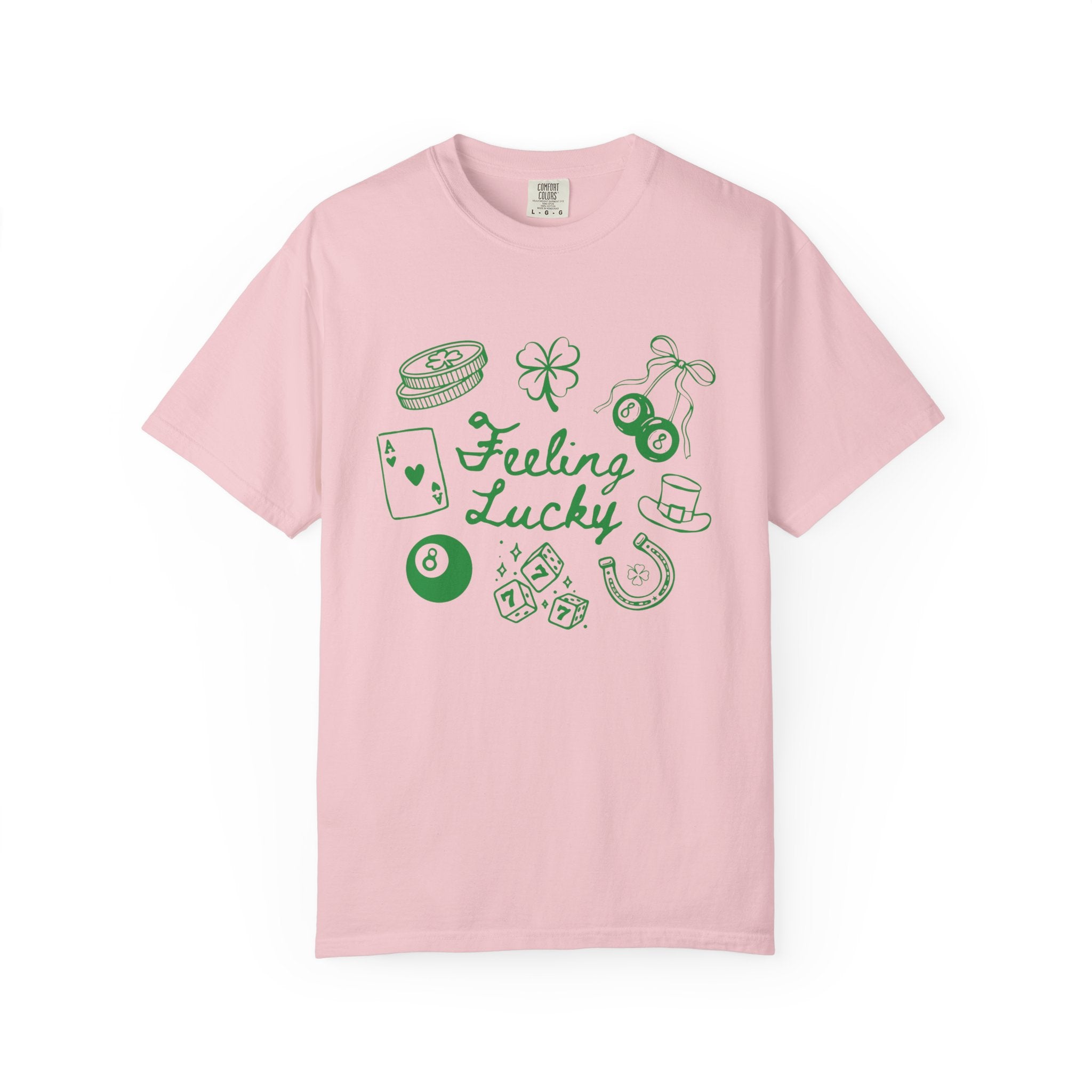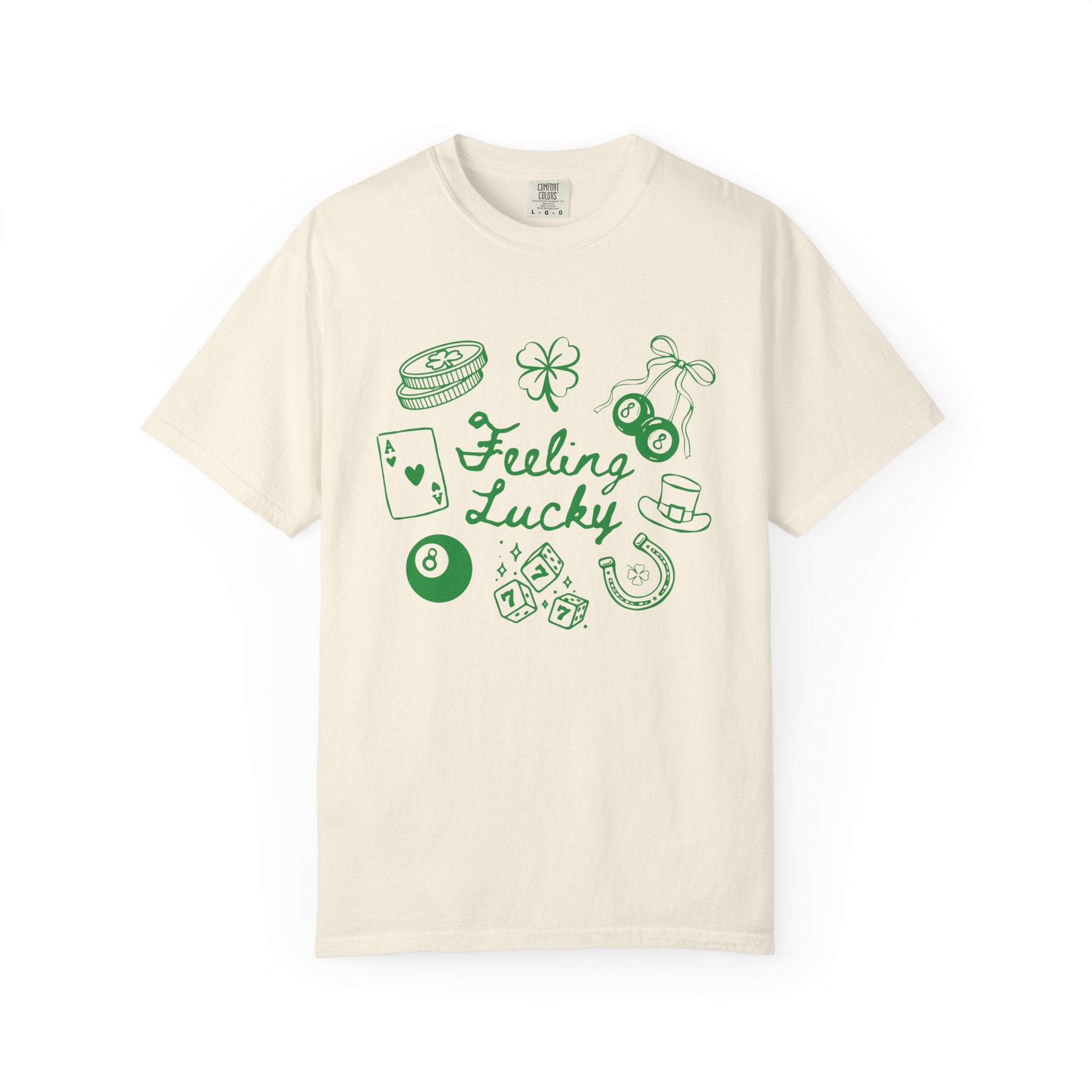Our Feeling Lucky Good Luck Charms Graphic T-Shirt is the perfect St. Patrick’s Day shirt for celebrating in festive style. Featuring playful lucky icons and a relaxed unisex fit, this soft short sleeve tee offers all-day comfort for parties, parades, and everyday wear. A fun and trendy good luck shirt for spring. Grab yours today and feel lucky wherever you go! 🍀
