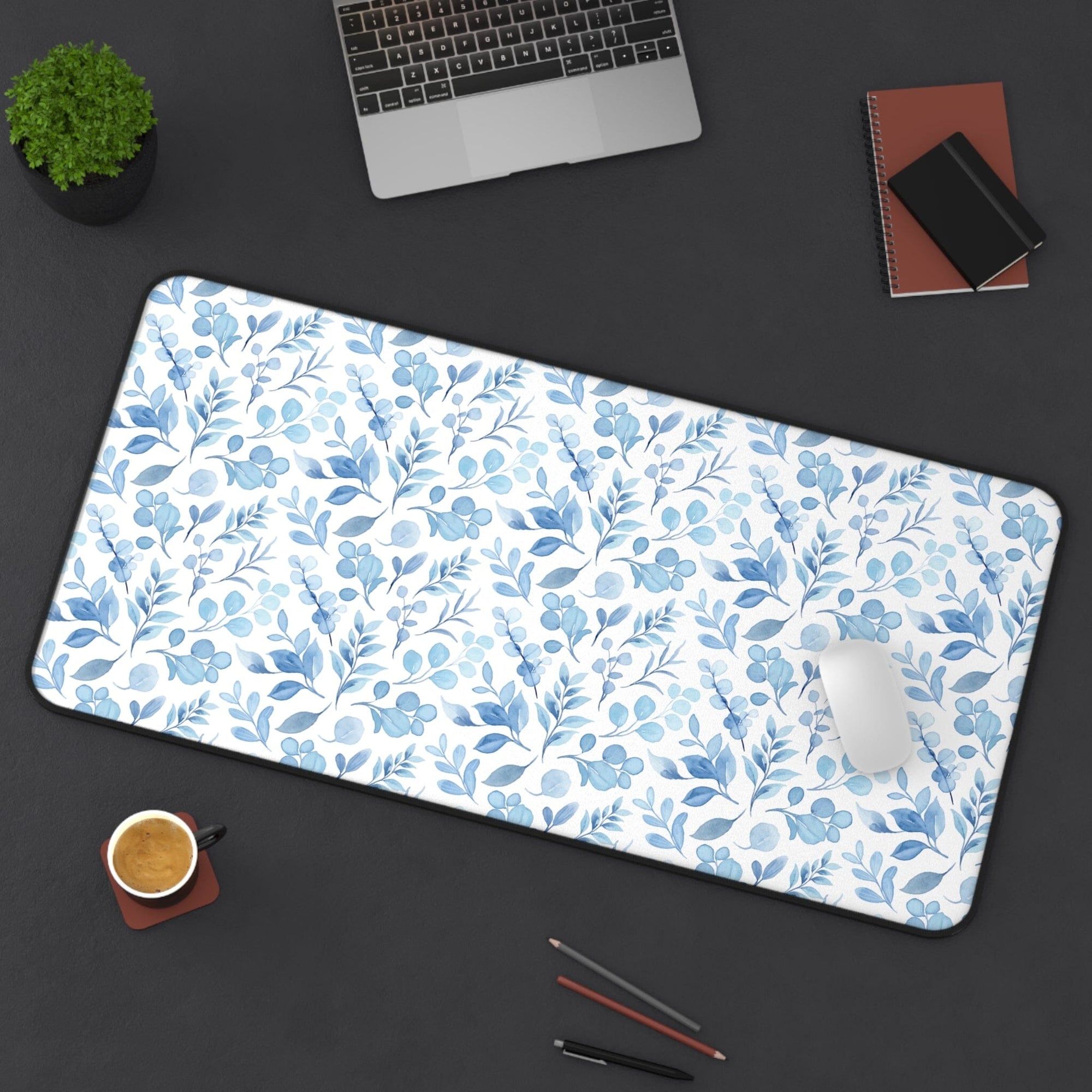 Floral Desk Mat - Elegant Blue Floral Design for Home Office Decor