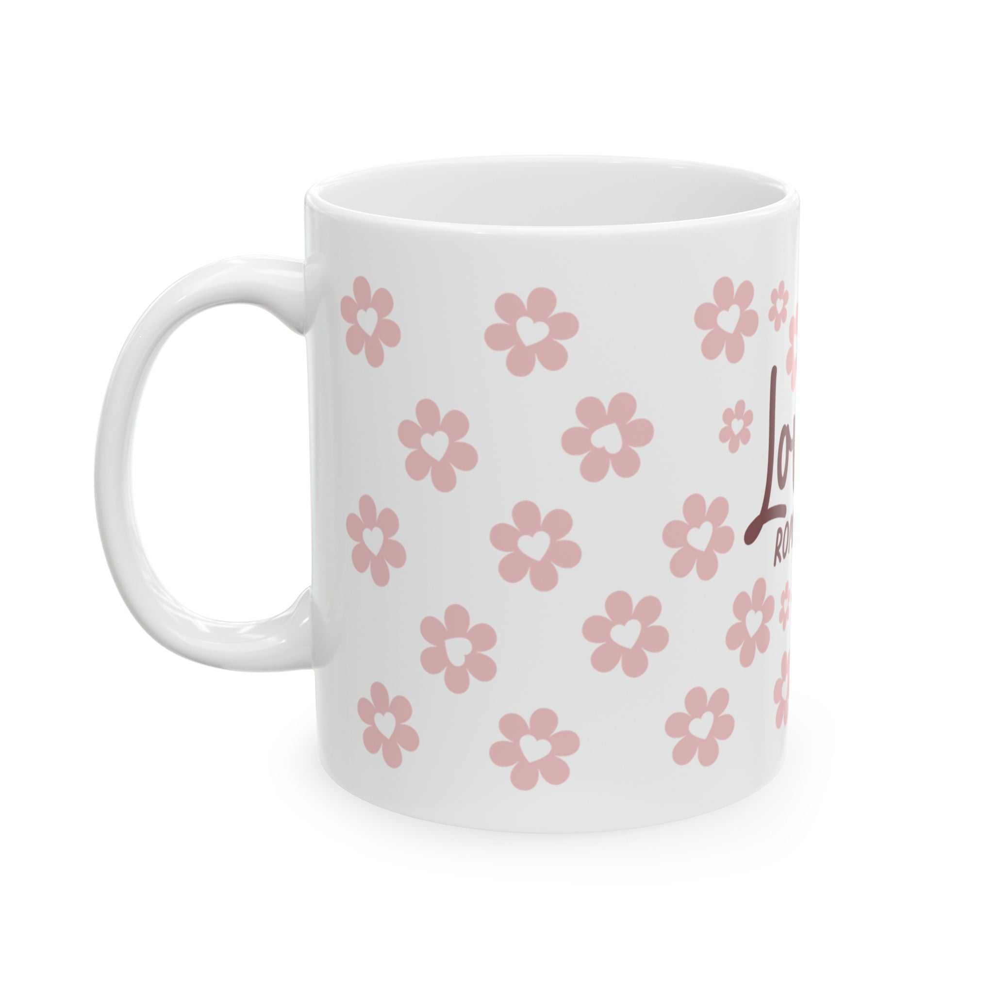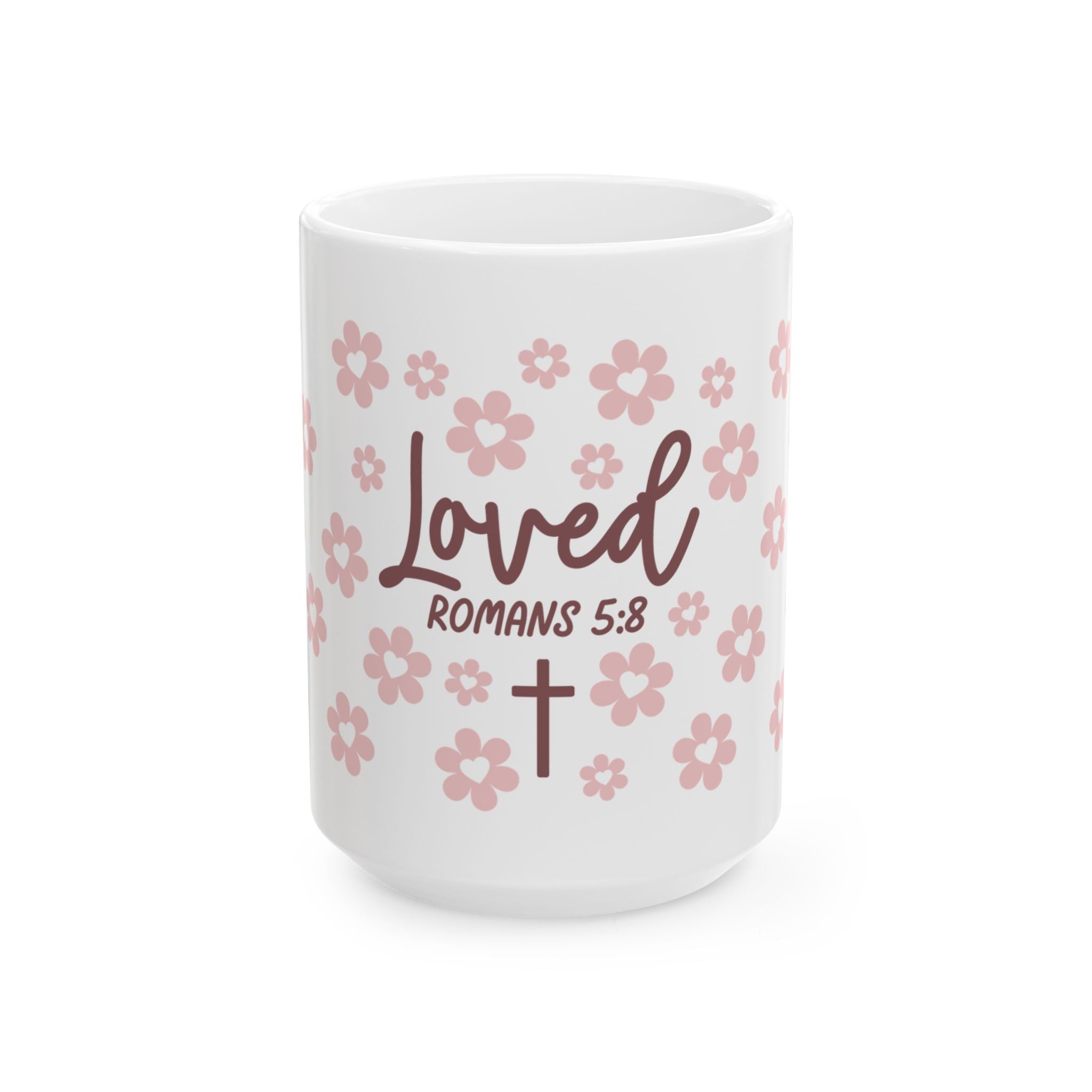Loved Romans 5:8 Ceramic Mug — Floral Christian Inspirational Coffee Cup
