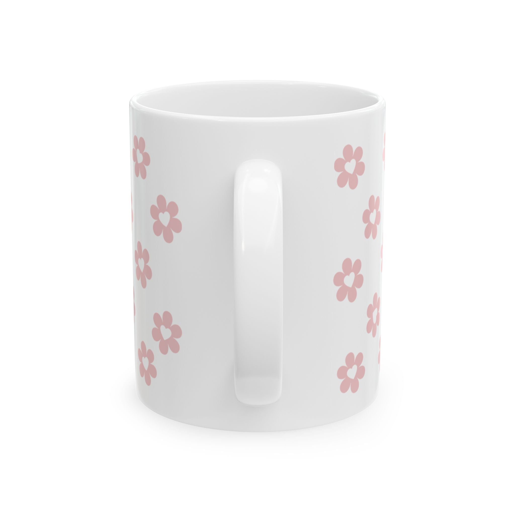 Warm, gentle, and quietly joyful — this ceramic mug brings a simple reminder of worth and grace to your morning routine. Soft pink blossoms scatter around the cup, framing the handwritten “Loved” and the comforting reference to Romans 5:8 with a small cross beneath. Hold it on slow mornings, set it beside a Bible or journal, or keep it on your desk as a hopeful, calming accent. The glossy white ceramic and bright print make the design feel fresh and tender, while the comfortable C-handle invites lingering sips and small moments of reflection.